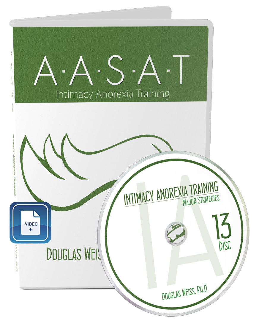 IAT 13 - Major Strategies Video Download is the 13th video from the AASAT Intimacy Anorexia Training Course. It goes over major strategies intimacy anorexics use to create distance. Dr. Weiss shares the major five strategies intimacy anorexics use to create distance. They are: 1. The Story, 2. Starve the Dog, 3. Reading My Mind, 4. Good Box, Bad Box, and 5. Photograph. This is a downloadable video.